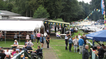 Auch an Land gab es einiges zu entdecken. Ein Flohmarkt lud zum Stöbern ein, während die kulinarische Versorgung keine Wünsche offen ließ: frisch geräucherte Forelle, Grillangebote von „Strammer